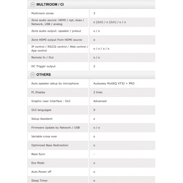 • Audyssey MultEQ XT32 (pripravené) a Audyssey LFC; Audyssey Dynamic Volume a Dynamic EQ