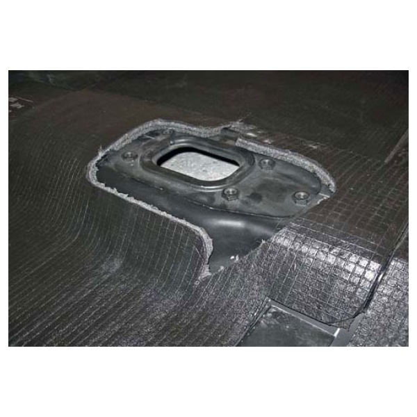 Viacvrstvový tlmiaci materiál: kombinácia penového polyetylénu a bitumenu,